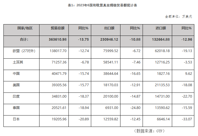 2023年6國(guó)和歐盟綢緞貿(mào)易的主要特點(diǎn)是: