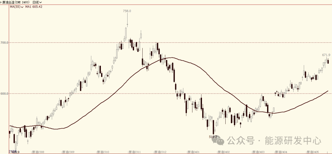 凌晨API數(shù)據(jù)顯示本周美國原油庫存增加了303.4萬桶,分析師預(yù)期增加241萬桶,數(shù)據(jù)整體弱于預(yù)期利空油價(jià)。整體來看油價(jià)仍維持高位大幅波動格局,投資者在等待新的指引。地緣方面哈以談判進(jìn)展一波三折,周一以色列與哈馬斯之間的談判將來加沙停火的希望又有所減弱,地緣風(fēng)險(xiǎn)仍支撐市場,但仍存在緩和可能,以色列方面迫于各方壓力不敢冒險(xiǎn)激化局勢,這也讓投資者保持了觀望態(tài)勢。整體來看短期油價(jià)漲勢暫緩,調(diào)整需求逐漸占據(jù)上風(fēng),調(diào)整空間和節(jié)奏仍需逐步觀察,注意節(jié)奏把握,謹(jǐn)慎參與。