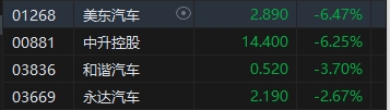汽車經(jīng)銷板塊今日表現(xiàn)欠佳,美東汽車跌超6%。消息面上,8家港股汽車經(jīng)銷商的2023年財(cái)報(bào)已先后出爐。其中,有5家公司2023年凈利潤(rùn)同比下滑。中升控股(14.4, -0.96, -6.25%)凈利潤(rùn)為50.18億元,同比下滑24.97%;永達(dá)汽車(2.19, -0.06, -2.67%)凈利潤(rùn)為5.86億元,同比下滑60.16%;美東汽車凈利潤(rùn)為1.56億元,同比下滑71.98%;百得利控股(0.46, 0.00, 0.00%)凈利潤(rùn)為0.84億元,同比下滑65.25%。正通汽車(0.255, 0.01, 2.00%)2023年虧損8.2億元,同比擴(kuò)大約176.1%;毛利為10.09億元,同比下降36%。