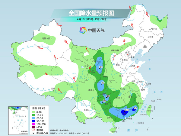 明天,內(nèi)蒙古中部、西北地區(qū)東部、湖北南部、湖南西部、江南南部、西南地區(qū)東部、華南大部等地部分地區(qū)有中到大雨,其中,福建東南部、廣東中北部等地部分地區(qū)有暴雨或大暴雨。