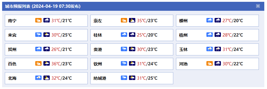 廣西氣象臺(tái)19日05時(shí)發(fā)布預(yù)報(bào):