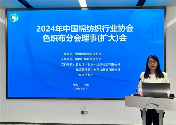 4月17日,由中國棉紡織行業(yè)協(xié)會主辦(以下簡稱“中棉行協(xié)”)、中棉行協(xié)色織布分會承辦、特思達(dá)(北京)紡織檢定有限公司、江蘇新瑞貝生物科技股份有限公司及上海立明集團(tuán)支持的2024年中國棉紡織行業(yè)協(xié)會色織布分會理事擴(kuò)大會在上海召開。中棉行協(xié)會長董奎勇、副會長王耀及色織布分會理事以上單位及相關(guān)會員企業(yè)代表參加會議。會議由中棉行協(xié)色織布分會秘書長和圓圓主持。