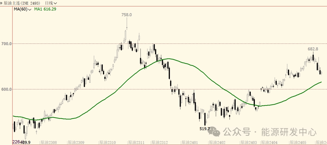 油價(jià)周一先抑后揚(yáng)收出企穩(wěn)星線,小幅收跌。白天亞洲時(shí)段油價(jià)繼續(xù)慣性下探,上周五中東地緣事件引發(fā)市場情緒的大幅起落之后投資者情緒從過度興奮到反轉(zhuǎn)的過程需要時(shí)間來平復(fù),大宗商品市場整體陷入高位大幅震蕩也助推了油價(jià)的調(diào)整。夜盤油價(jià)逐漸回穩(wěn)并組織震蕩反彈,最終收出長下影線。