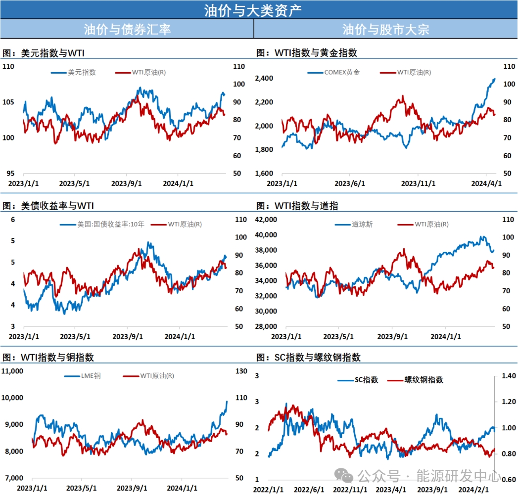 【3】美國能源企業(yè)五周來首次增加油氣鉆機(jī)數(shù)量。貝克休斯報(bào)告中表示,截至4月19日當(dāng)周,美國石油和天然氣鉆機(jī)總數(shù)增加2座,至619座。盡管本周鉆機(jī)數(shù)增加,貝克休斯表示,鉆機(jī)總數(shù)較去年同期少134座,或18%。貝克休斯表示,本周石油鉆機(jī)數(shù)增加52座,至511座,為9月以來最高水準(zhǔn)。EIA最新展望,美國2024年原油產(chǎn)量預(yù)計(jì)將從2023年創(chuàng)紀(jì)錄的1290萬桶/日增至1320萬桶/日,2025年料增至1370萬桶/日。