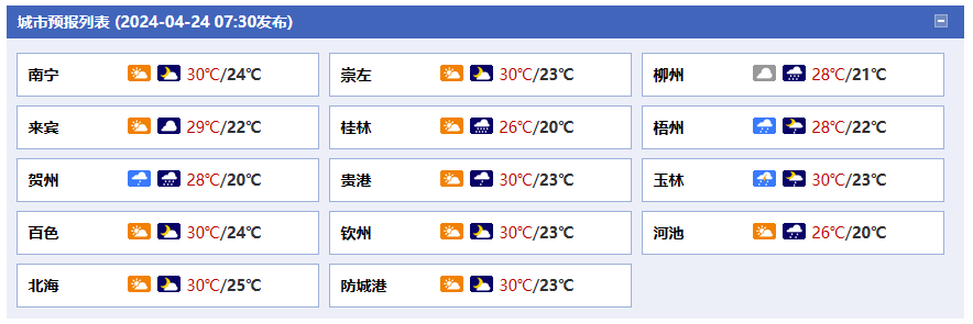 廣西氣象臺(tái)24日05時(shí)發(fā)布預(yù)報(bào):