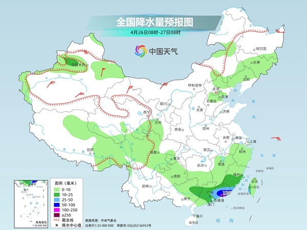 明天強降雨范圍縮減,預(yù)計新疆伊犁河谷、福建中南部、廣西東部、廣東西北部和中南部等地部分地區(qū)有中到大雨,其中,廣東東部等地部分地區(qū)有暴雨,局地大暴雨。