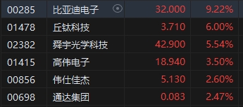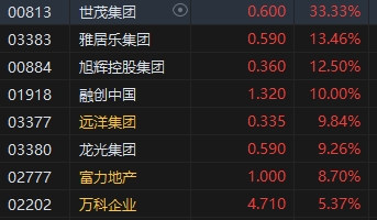 5月9日消息,港股三大指數(shù)集體上漲,截至收盤,恒生指數(shù)(18537.811, 223.95, 1.22%)漲1.22%,報18537.81點,恒生科技指數(shù)(3947.41, 75.40, 1.95%)漲1.95%,國企指數(shù)漲1.61%。盤面上,科網(wǎng)股普漲,聯(lián)想大漲近9%,美團(tuán)漲近4%,騰訊漲超2%;杭州、西安相繼取消住房限購,內(nèi)房股集體走強(qiáng),世茂集團(tuán)(0.6, 0.15, 33.33%)大漲33%;蘋果概念股全天漲幅居前,比亞迪電子(32, 2.70, 9.21%)漲超9%;半導(dǎo)體概念股齊漲,華虹半導(dǎo)體(17.04, 1.38, 8.81%)漲近9%;生物技術(shù)板塊亦漲幅明顯,再鼎醫(yī)藥(15.9, 2.74, 20.82%)漲近21%;風(fēng)電、軍工、航運等板塊均漲幅靠前。
