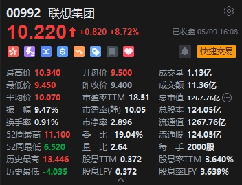 聯(lián)想集團(tuán)(10.22, 0.82, 8.72%)大漲近9%。消息面上,聯(lián)想此前在創(chuàng)新科技大會正式發(fā)布多款A(yù)I PC新產(chǎn)品。據(jù)TechInsights報告顯示,2024Q1聯(lián)想全球筆記本電腦出貨1080萬臺,同比增長12%,高于全市場7%的增速,并且以23%的市場份額領(lǐng)跑。
