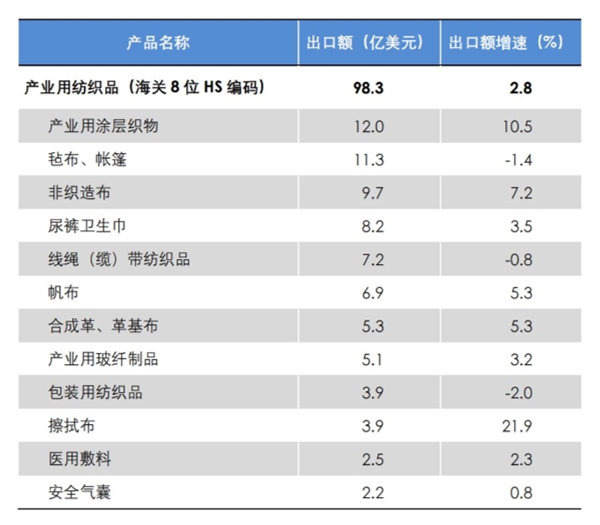 數(shù)據(jù)來源:中國海關(guān),中國產(chǎn)業(yè)用紡織品行業(yè)協(xié)會