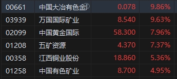 銅業(yè)股漲幅居前,五礦資源漲超7%。消息面上,5月20日亞太交易時段,COMEX期金、COMEX期銀、COMEX期銅繼續(xù)上漲,均創(chuàng)下多時新高。由于擔憂中東供應可能出現中斷,貴金屬與工業(yè)金屬再次成為投資者做多的熱點。分析師繼續(xù)看好這些貴金屬本輪后續(xù)漲勢,有分析師更認為,眼下買入銅是最佳交易。