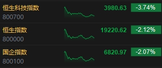 5月21日消息,港股三大指數(shù)集體低開低走,截至收盤,恒生指數(shù)(19220.621, -415.60, -2.12%)跌2.12%,報(bào)19220.62點(diǎn),恒生科技指數(shù)(3980.63, -154.75, -3.74%)跌3.74%,國企指數(shù)跌2.07%。盤面上,百度跌超4%,網(wǎng)易、快手跌近4%,小米、騰訊跌近3%;汽車股集體下挫,理想汽車全天重挫逾19%;虛擬貨幣概念股齊漲,雄岸科技(0.077, 0.01, 6.94%)漲近7%;紐約銅遭遇逼空行情,洛陽鉬業(yè)(7.6, -0.59, -7.20%)跌超7%;光伏股集體走弱,信義能源(1.17, -0.05, -4.10%)跌超4%;內(nèi)房股普遍下跌,中梁控股(0.25, -0.02, -7.41%)跌超7%;此外,互聯(lián)網(wǎng)醫(yī)療、零售、醫(yī)藥外包等板塊跌幅靠前。