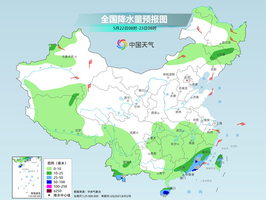 雖然上一輪強降雨過程已經(jīng)告一段落,但今天(5月22日)起至25日,南方的降水并不會完全停止,只是整體范圍較小、強度較弱。預計26日起,南方將迎來新一輪強降雨過程,局地再現(xiàn)暴雨或大暴雨。此外,今明天,北方大部地區(qū)晴熱天氣將不斷發(fā)展,新一輪高溫過程又將上線。