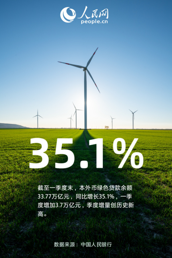 中國人民銀行近日發(fā)布的2024年一季度金融機(jī)構(gòu)貸款投向統(tǒng)計(jì)報(bào)告顯示,截至一季度末,本外幣綠色貸款余額33.77萬億元,同比增長35.1%,一季度增加3.7萬億元,季度增量創(chuàng)歷史新高。