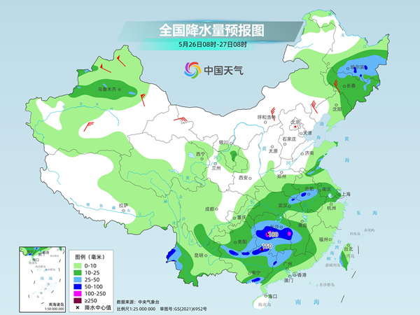 今明兩天(5月26日至27日),南方大部降雨持續(xù),其中今天,江南西部、華南北部將成為強(qiáng)降雨中心,部分地區(qū)將遭遇暴雨或大暴雨,同時(shí)江南等地最高氣溫仍超30℃,悶熱感明顯。而北方降雨則逐漸減少,今天東北地區(qū)等地有較強(qiáng)降雨,氣溫也將隨之下降。