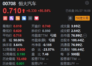 恒大汽車(chē)全天漲近87%。消息面上,恒大汽車(chē)昨日晚間公布,公司31.45億股潛在待售股份(占全部已發(fā)行股份的約29.0%)將即時(shí)被收購(gòu),32.03億股潛在待售股份(占全部已發(fā)行股份的約29.5%)將成為潛在買(mǎi)方于買(mǎi)賣(mài)協(xié)議日期后一定期限內(nèi)的一項(xiàng)可行使選擇權(quán)的標(biāo)的。公告稱,潛在買(mǎi)方(或其經(jīng)公司同意后指定的另一方)將向公司提供信貸額,以資助集團(tuán)持續(xù)經(jīng)營(yíng)及發(fā)展集團(tuán)電動(dòng)汽車(chē)業(yè)務(wù)。