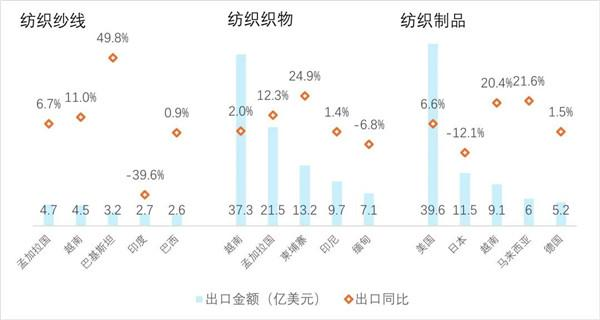 紡織紗線、服裝出口壓力略有加大