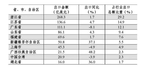隨著中、西部省市自治區(qū)高水平承接發(fā)展紡織產(chǎn)業(yè),不斷提升競爭力,部分省市自治區(qū)紡織服裝產(chǎn)品出口額實(shí)現(xiàn)穩(wěn)定增長。今年1~4月,西部12省市合計出口紡織品服裝95.2億美元,同比增長28.7%,其中新疆維吾爾自治區(qū)出口紡織服裝產(chǎn)品50.8億美元,漲幅高達(dá)37.1%,躍居全國第五;廣西壯族自治區(qū)紡織品服裝出口額為21.5億美元,同比增長48.2%。中部6省中,湖北省出口紡織品服裝16億美元,同比大幅增長36%。