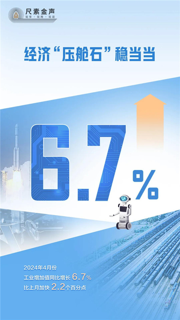 工業(yè)是國(guó)民經(jīng)濟(jì)的主體,被喻為經(jīng)濟(jì)“壓艙石”。日前,中國(guó)經(jīng)濟(jì)4月報(bào)出爐:工業(yè)增加值同比增長(zhǎng)6.7%,比上月加快2.2個(gè)百分點(diǎn);環(huán)比增長(zhǎng)0.97%,為近年月度環(huán)比增速高點(diǎn);41個(gè)工業(yè)大類(lèi)行業(yè)中,36個(gè)行業(yè)增加值同比實(shí)現(xiàn)增長(zhǎng);619種主要工業(yè)產(chǎn)品中,386種產(chǎn)品產(chǎn)量同比實(shí)現(xiàn)增長(zhǎng);工業(yè)企業(yè)當(dāng)月利潤(rùn)由降轉(zhuǎn)增,超七成行業(yè)利潤(rùn)實(shí)現(xiàn)增長(zhǎng)……工業(yè)生產(chǎn)增長(zhǎng)加快,持續(xù)回升向好的態(tài)勢(shì)令人欣喜。