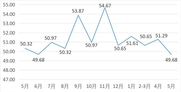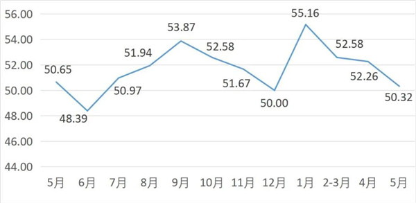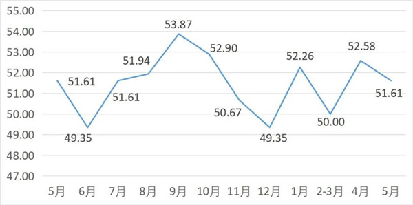 從管理者景氣指數(shù)來(lái)看,總指數(shù)中,5月管理者景氣指數(shù)為50.16,較上月下降1.88個(gè)百分點(diǎn);經(jīng)營(yíng)環(huán)境指數(shù)為51.94,較上月下降0.64個(gè)百分點(diǎn)。