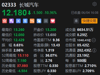 汽車股表現(xiàn)低迷,長城汽車大跌近11%。6月3日消息,長城汽車公告,5月汽車銷量9.15萬臺,同比下降9.51%;1-5月累計銷量46.16萬臺,同比增長11.42%。