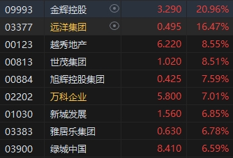 內(nèi)房股全天走強(qiáng),金輝控股漲近21%。據(jù)中指院數(shù)據(jù),2024年5月,全國100個城市新建商品住宅平均價格為16396元/平方米,環(huán)比上漲0.25%。從漲跌城市個數(shù)看,44個城市房價出現(xiàn)環(huán)比上漲,40個城市環(huán)比下跌,16城持平。同比來看,全國百城新建住宅平均價格較去年同期上漲1.33%。