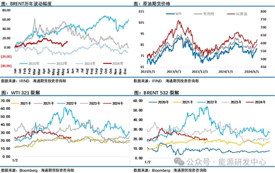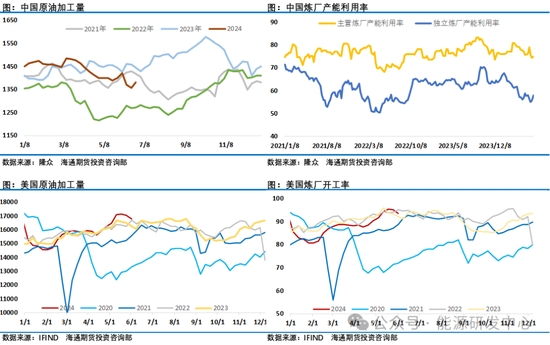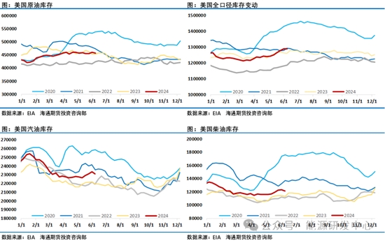 EIA報(bào)告顯示06月14日當(dāng)周除卻戰(zhàn)略儲(chǔ)備的商業(yè)原油庫(kù)存減少254.7萬(wàn)桶至4.57億桶,汽油庫(kù)存下降228萬(wàn)桶,精煉油庫(kù)存下降172.6萬(wàn)桶,油品庫(kù)存下降好于預(yù)期,另外數(shù)據(jù)顯示美國(guó)當(dāng)周成品油消費(fèi)有明顯反彈,接近與2023年水平,這也推動(dòng)了成品油裂解利潤(rùn)穩(wěn)定,尤其是前期一致弱于原油的美國(guó)汽油裂解差最近2個(gè)交易日開(kāi)始回暖。包括高盛、荷蘭國(guó)際和花旗在內(nèi)的國(guó)際投行都指出了原油市場(chǎng)將面臨供應(yīng)短缺。花旗指出,由于全球原油和成品油缺口約為20萬(wàn)桶/天,油價(jià)將在夏季高峰期迎來(lái)看漲行情。如果僅考慮原油,則缺口更大。Kpler則認(rèn)為隨著夏季石油需求的增加和中東地緣政治緊張局勢(shì)的加劇可能會(huì)推動(dòng)布倫特原油接近每桶90美元?,F(xiàn)貨市場(chǎng)在夏季來(lái)臨前趨于緊張,預(yù)計(jì)6月份全球原油需求量將環(huán)比增加170萬(wàn)桶/日,7月份將再增加107萬(wàn)桶/日。與此同時(shí),胡塞武裝在紅海發(fā)動(dòng)的襲擊以及以色列與真主黨之間的緊張局勢(shì)加劇,使得市場(chǎng)對(duì)原油價(jià)格的看漲情緒略有升溫。正是這種機(jī)構(gòu)整體性的高預(yù)期,結(jié)合原油市場(chǎng)在歐佩克+會(huì)議之后處于一個(gè)利空出盡、局勢(shì)回暖的窗口給油價(jià)帶來(lái)了一輪超預(yù)期的反彈。目前來(lái)看在6月份這個(gè)階段給市場(chǎng)已經(jīng)給了油價(jià)一個(gè)較高的預(yù)期,后續(xù)供需層面能否出現(xiàn)符合預(yù)期的改善將成為市場(chǎng)的關(guān)注點(diǎn)。
