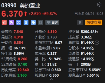 內(nèi)房股個別強勢,美的置業(yè)大漲近70%。美的系擬進行重組計劃。美的置業(yè)公布,擬將剝離房地產(chǎn)開發(fā)業(yè)務(wù),改由不上市的美的建業(yè)(私人公司)持有,股東可選擇收取1股美的建業(yè)股份,或收取現(xiàn)金5.9港元,較上個交易日(21日)收市價溢價57.3%。