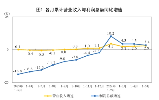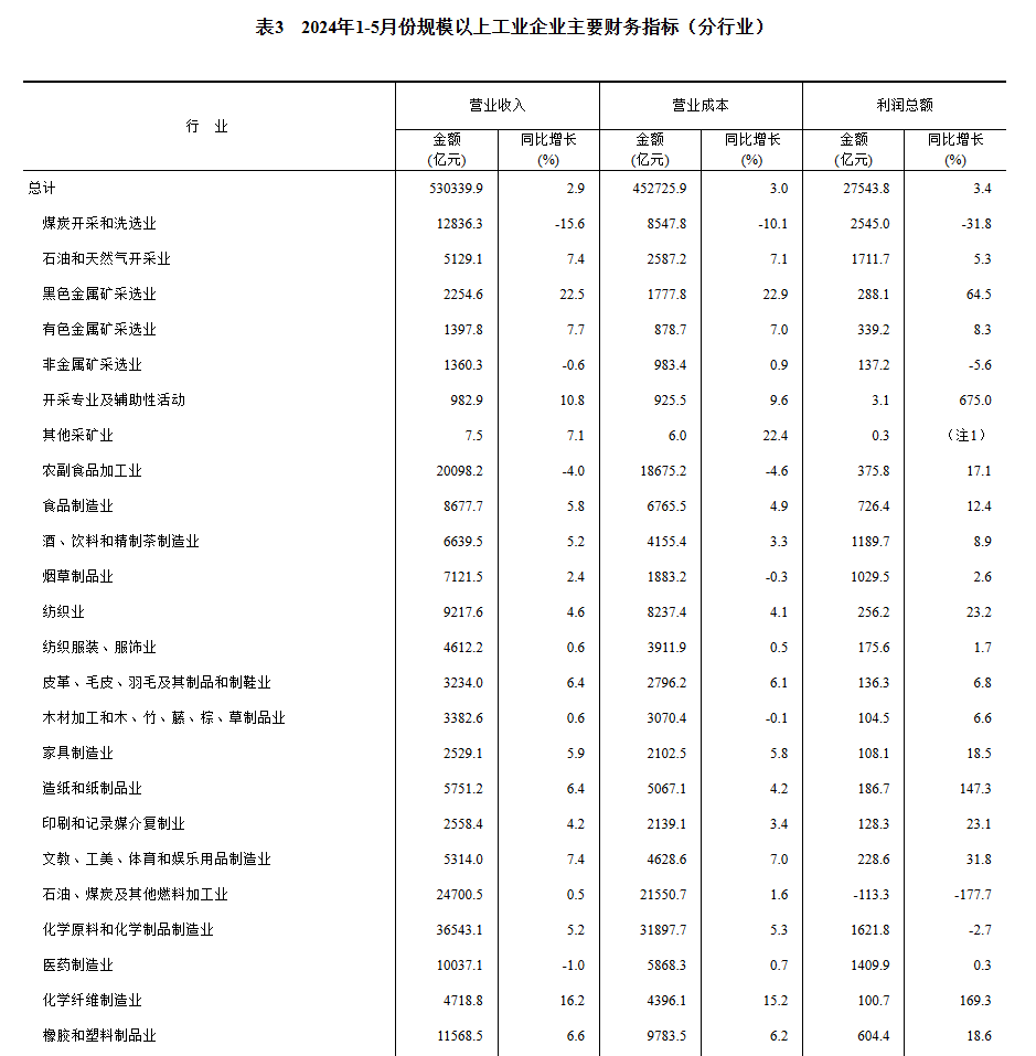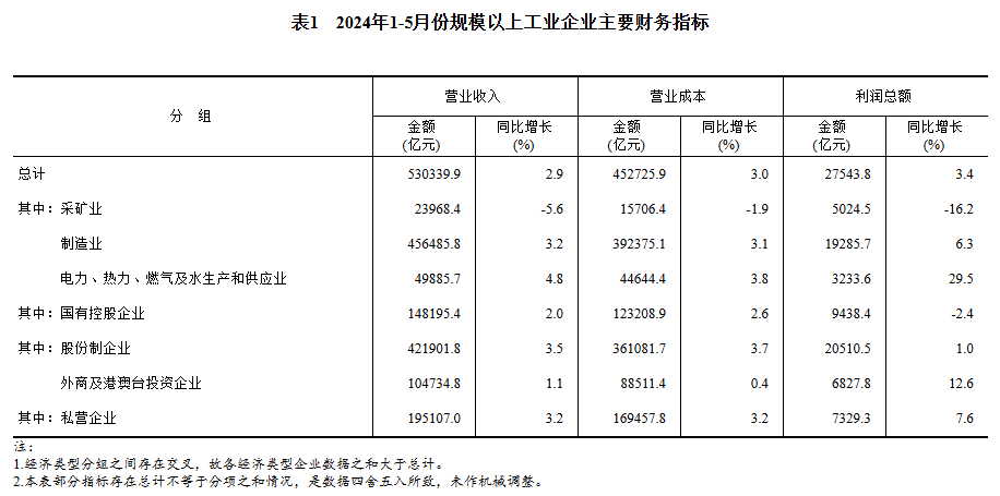 1—5月份,全國(guó)規(guī)模以上工業(yè)企業(yè)實(shí)現(xiàn)利潤(rùn)總額27543.8億元,同比增長(zhǎng)3.4%(按可比口徑計(jì)算,詳見(jiàn)附注二)。