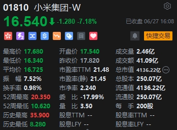 小米集團(tuán)全天重挫逾7%。消息面上,此前小米聯(lián)合創(chuàng)始人、副董事長林斌違背其5年不再減持承諾,引發(fā)市場持續(xù)爭議。據(jù)港交所信息顯示,6月4日-6月6日,林斌連續(xù)3日減持小米股份合計(jì)1000萬股,套現(xiàn)約1.79億港元。盡管林斌解釋稱,此次減持股份為早前已捐贈(zèng)給旗下基金會(huì)的1.2億B類股,并不包含在禁售承諾中。減持金額也主要是為履行與中山大學(xué)1億元的捐贈(zèng)協(xié)議和其他公益用途。但由于林斌歷史上曾多次大筆減持套現(xiàn)小米股份,部分投資者對(duì)此次減持事項(xiàng)仍十分關(guān)切,甚至將其視為林斌“套現(xiàn)離場”的信號(hào)。