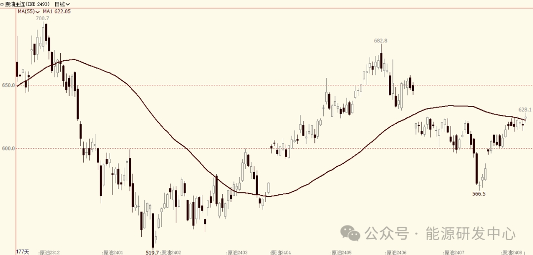 油價(jià)周四夜盤再次刷新了高點(diǎn),雖然周三EIA周度累庫及成品油消費(fèi)環(huán)比回落是典型的利空數(shù)據(jù),但油價(jià)還是頂住了調(diào)整壓力,隨著布倫特原油(627, 8.60, 1.39%)臨近交割,以色列與黎巴嫩直接沖突不斷升溫,市場對(duì)供應(yīng)焦慮推動(dòng)油價(jià)再次走高,地緣溢價(jià)推動(dòng)油價(jià)周四再次組織反彈,原油市場月差同步走擴(kuò)。過去7個(gè)交易日油價(jià)上演了復(fù)雜的高位橫盤拉鋸,各類因素博弈激烈,周四地緣風(fēng)險(xiǎn)加持下油價(jià)逆轉(zhuǎn)走弱風(fēng)險(xiǎn)重新轉(zhuǎn)強(qiáng)重心有繼續(xù)抬升跡象。SC原油在這個(gè)過程中走勢明顯弱于歐美市場,進(jìn)一步反映出國內(nèi)終端需求疲弱表現(xiàn)。