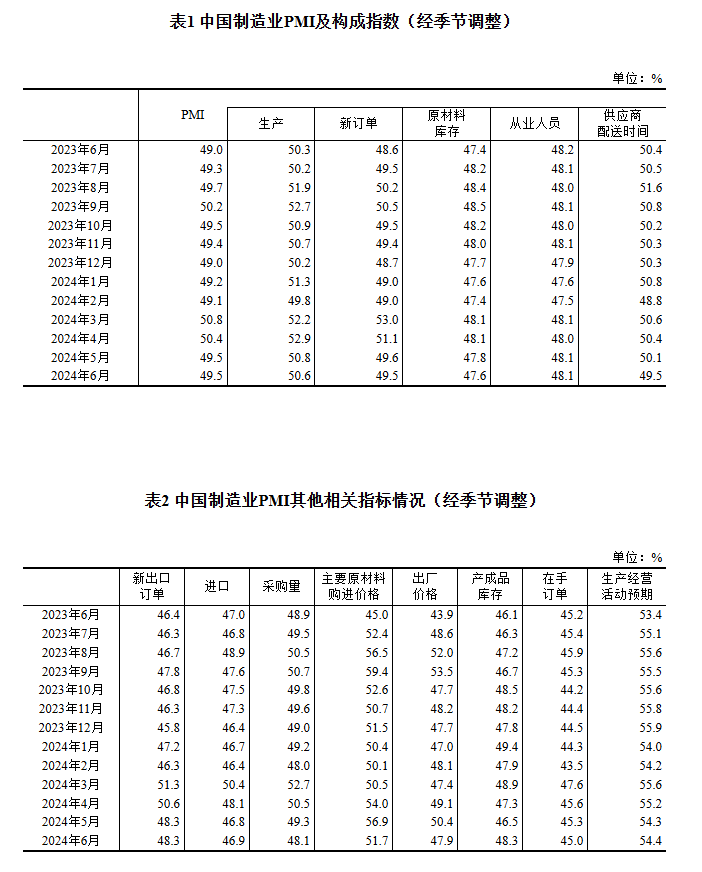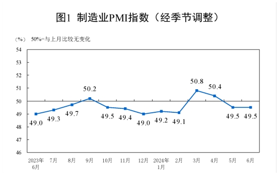 6月份,制造業(yè)采購經(jīng)理指數(shù)(PMI)為49.5%,與上月持平,制造業(yè)景氣度基本穩(wěn)定。