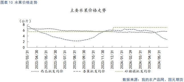 截止6月28日,西瓜均價(jià)2.68元/公斤,較上周環(huán)比下降0.24元/公斤,西瓜等時(shí)令水果目前仍處于上量降價(jià)趨勢(shì)中,且夏季水果品種日趨豐富,蘋(píng)果受時(shí)令水果沖擊,性?xún)r(jià)比不高,處于消費(fèi)淡季。