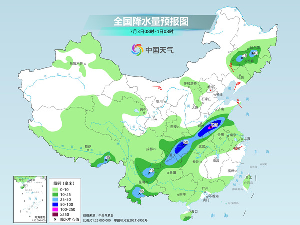 昨天,南方主雨帶依然呈現(xiàn)西南至東北走向,其中江蘇沿淮地區(qū)、安徽中部和北部、江西北部、湖北中東部、湖南中北部、貴州東部、廣西中北部及云南西部等地部分地區(qū)出現(xiàn)暴雨或大暴雨,江蘇淮安、安徽合肥、湖北咸寧、湖南岳陽等局地特大暴雨。