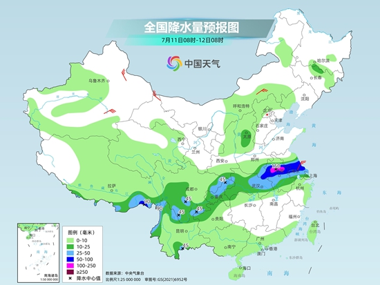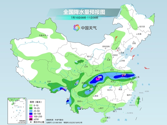 今天開始至13日,四川盆地的強降雨還將維持,但強降雨帶東段將會發(fā)生變化,強降雨落區(qū)將向南轉(zhuǎn)移至江漢、江淮、黃淮南部等地。