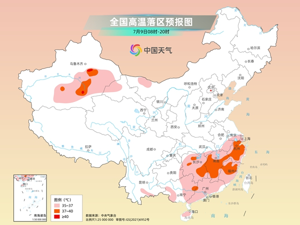 今天(7月9日)開始,我國強降雨帶東段將南壓至江淮、黃淮南部一帶,四川、湖北、河南、江蘇等地的部分地區(qū)有大暴雨。氣溫方面,隨著副熱帶高壓減弱、雨帶南落,明天起南方高溫悶熱范圍將有所縮減,不過浙江、福建等地高溫卻耐力持久,本周將持續(xù)在線。
