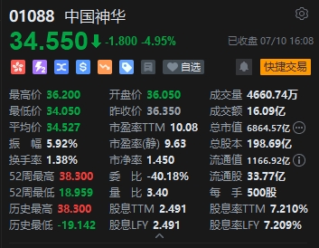 煤炭股表現(xiàn)低迷,龍頭中國(guó)神華跌近5%。中國(guó)神華公告,按中國(guó)企業(yè)會(huì)計(jì)準(zhǔn)則,預(yù)計(jì)上半年凈利潤(rùn)286億元至306億元,同比減少27億元至47億元,下降8.1%至14.1%。2024年上半年,歸屬于本公司股東的凈利潤(rùn)同比下降,主要是受煤炭平均銷售價(jià)格下降、燃煤機(jī)組平均利用小時(shí)數(shù)下降等因素的影響。