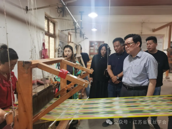 在實(shí)地考察桑皮紙的生產(chǎn)工藝和生產(chǎn)情況之后,調(diào)研組來到了當(dāng)?shù)刈畲蟮陌氯R斯絲綢工廠——吉亞麗人公司。艾德萊斯絲綢以其古老的手工制作技藝和獨(dú)特的色彩與質(zhì)地,贏得了調(diào)研組的高度贊賞。
