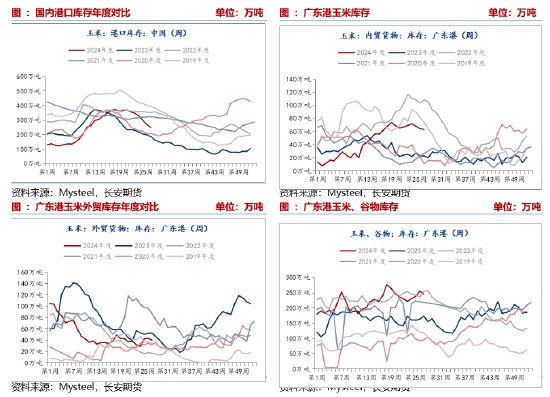 從庫存端來看,由于進口玉米及谷物性價比較高,導致內(nèi)貿(mào)玉米需求不足,庫存同比大增,拖累國產(chǎn)玉米價格。后續(xù),全球玉米豐產(chǎn)預期猶在,糧價存壓,進口利潤或持續(xù)凸顯,國產(chǎn)玉米價格持續(xù)承壓概率較大。