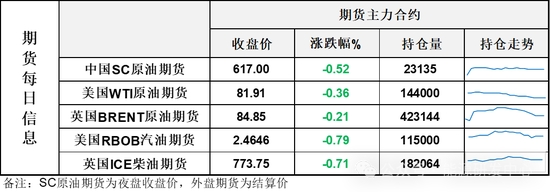 【1】WTI主力原油期貨收跌0.3美元,跌幅0.36%,報(bào)81.91美元/桶;布倫特主力原油期貨收跌0.18美元,跌幅0.21%,報(bào)84.85美元/桶;INE原油期貨收跌0.52%,報(bào)617元。
