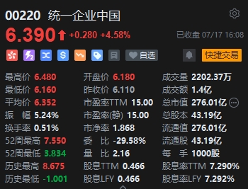 統(tǒng)一企業(yè)中國漲超4%。消息面上,麥格理稱相信統(tǒng)一近期食品安全影響屬可控。麥格理發(fā)表研究報告指,近日網(wǎng)上流傳統(tǒng)一旗下產(chǎn)品老壇酸菜牛肉面內含老鼠頭,引發(fā)食物安全疑慮,但相信影響屬可控,因為該系列產(chǎn)品占集團總銷售約數(shù)個百分點,預期只會為全年凈利潤帶來約不超過4.6%負面影響。同時飲料業(yè)務將續(xù)帶動整體銷售表現(xiàn),重申“跑贏大市”評級,但目標價從8.4港元,下調4.8%至8港元。