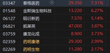 醫(yī)藥外包概念股漲幅居前,泰格醫(yī)藥漲超7%。消息面上,美國6月通脹超預期回落疊加鮑威爾頻頻“放鴿”,當前市場預測美聯(lián)儲九月降息概率升至100%。開源證券此前指出,隨著美聯(lián)儲將進入降息周期,流動性改善有助于優(yōu)化投融資環(huán)境并提高新藥研發(fā)景氣度,有望給估值仍處于底部的創(chuàng)新藥標的帶來更大的估值修復空間。另外,利好政策頻出支持創(chuàng)新藥產(chǎn)業(yè)發(fā)展。