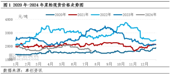 本年度菜粕市場持續(xù)受制于供強需弱的基本面,行情承壓,自5月中下旬至7月15日國內(nèi)菜粕走出一波跌勢,現(xiàn)貨均價跌至2415元/噸,跌破前期3月份創(chuàng)下的低點,亦是近4年來的新低,僅高于2020年。