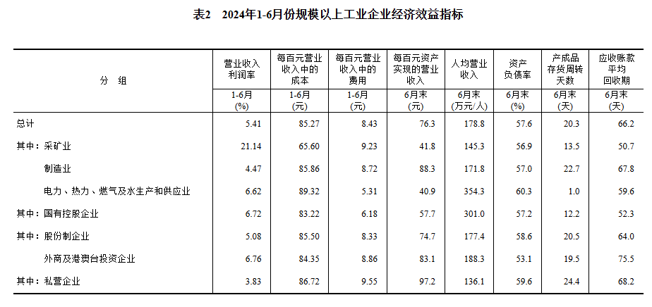 6月末,規(guī)模以上工業(yè)企業(yè)資產(chǎn)總計172.05萬億元,同比增長5.7%;負債合計99.07萬億元,增長5.4%;所有者權(quán)益合計72.97萬億元,增長6.0%;資產(chǎn)負債率為57.6%,同比下降0.1個百分點。