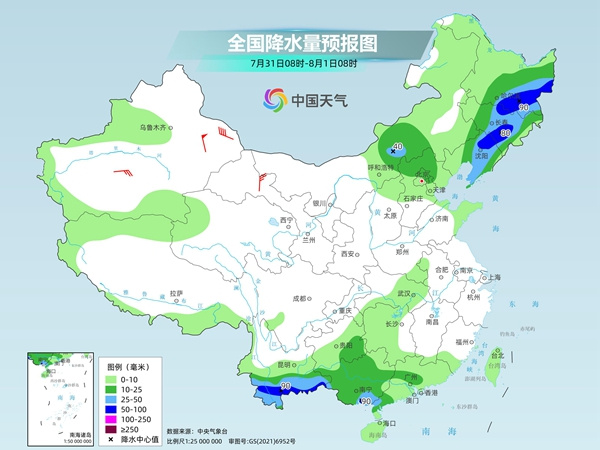 明天,東北地區(qū)中東部、華北北部、西南地區(qū)南部、華南西部等地部分地區(qū)有中到大雨,其中,黑龍江東部、吉林中東部、遼寧北部和東部、云南南部等地部分地區(qū)有暴雨。