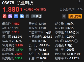 7月31日消息,港股三大指數(shù)高開高走,截至收盤,恒生指數(shù)(17344.6, 341.69, 2.01%)漲2.01%,報17344.6點,恒生科技指數(shù)(3516.87, 102.83, 3.01%)漲3.01%,國企指數(shù)漲2.01%。盤面上,科網(wǎng)股普遍上漲,快手漲超4%領(lǐng)銜,小米漲超3%,美團、網(wǎng)易、騰訊漲超2%,京東、阿里巴巴漲超1%;醫(yī)藥外包概念股全天漲幅居前,藥明生物(11.52, 1.02, 9.71%)漲近10%;中資券商股集體高漲,弘業(yè)期貨(1.88, 0.69, 57.98%)漲近58%領(lǐng)銜,中金公司(8.71, 0.69, 8.60%)、中國銀河(4, 0.30, 8.11%)漲超8%;重型機械股漲勢活躍,中國重汽(20.55, 1.57, 8.27%)漲超8%;SaaS概念股齊漲,金蝶國際(6.27, 0.61, 10.78%)漲超10%;家電股漲勢強勁,海信家電(25.25, 2.25, 9.78%)漲超10%。