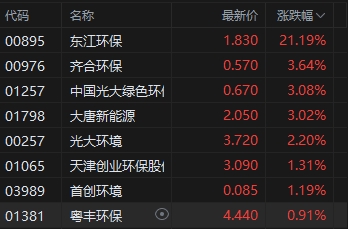 8月12日消息,今日港股三大指數(shù)漲跌不一,截至收盤,恒生指數(shù)(17111.65, 21.42, 0.13%)漲0.13%,報17111.65點,恒生科技指數(shù)(3429.84, -6.96, -0.20%)跌0.20%,國企指數(shù)漲0.20%。盤面上,科網(wǎng)股漲跌互現(xiàn),聯(lián)想漲超2%,嗶哩嗶哩跌近7%;環(huán)保股全天漲幅居前,東江環(huán)保(1.83, 0.32, 21.19%)漲超20%;煤炭股漲勢活躍,中煤能源(8.3, 0.21, 2.60%)漲超2%;內(nèi)房股紛紛走低,世茂集團(0.7, -0.06, -7.89%)跌近8%。
