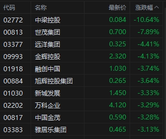 內(nèi)房股紛紛走低,世茂集團跌近8%。消息面上,據(jù)中指研究院,上周樓市整體環(huán)比下降42.65%,同比下降27.38%。各線城市整體同環(huán)比漲跌節(jié)奏一致,二線城市環(huán)比跌幅最大,杭州領(lǐng)跌,跌幅為84.3%。庫存整體無明顯變化。