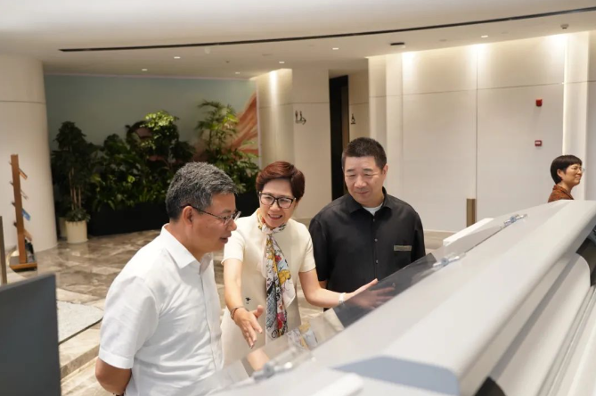 走進萬事利科創(chuàng)中心,暨軍民副主任一行參觀了以萬事利AI花型設(shè)計大模型、無水印花一體機為代表的新質(zhì)生產(chǎn)力,近距離感受萬事利絲綢以數(shù)字創(chuàng)新引領(lǐng)的全方位蛻變。