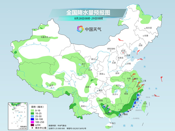 今明天,華東和華南沿海部分地區(qū)有中到大雨,局地暴雨;同時,新疆南疆盆地西部有較強降雨,局地累計降雨量具有一定極端性。