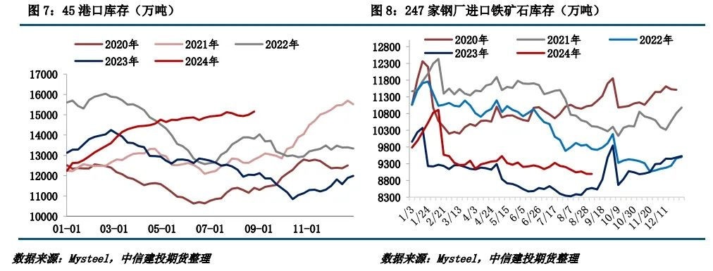 四、鐵礦石庫(kù)存:本期45港鐵礦石庫(kù)存重回累庫(kù)通道